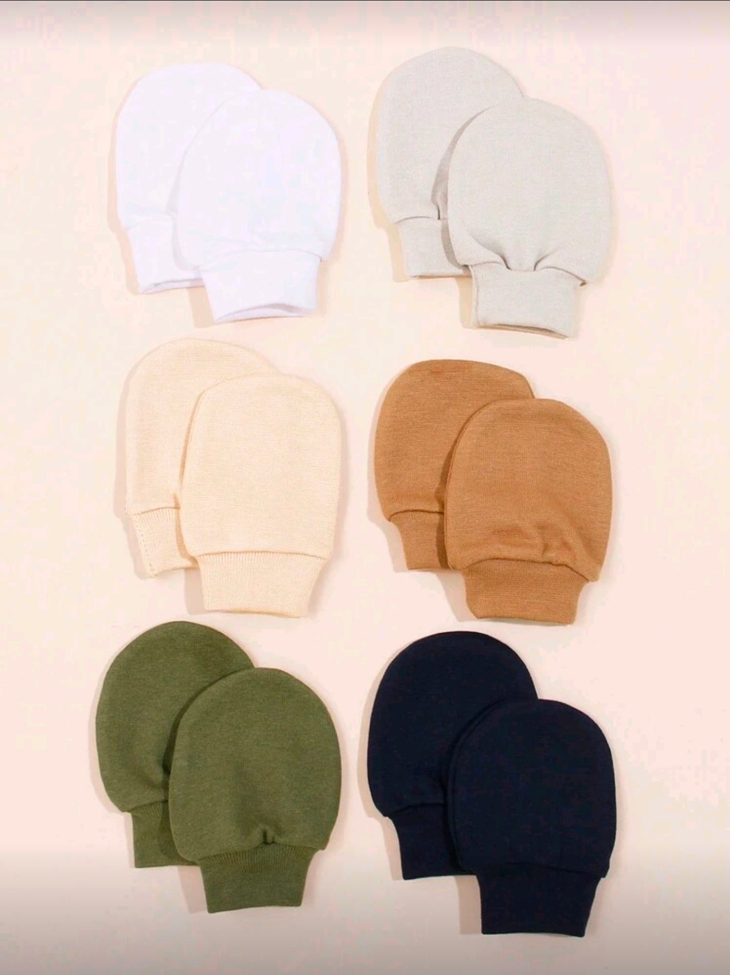 6 Pairs New Born Baby Anti-Scratch Mittens, 0-3 Months Infant Windproof Gloves, Plain Soft Material, Suitable For All Seasons