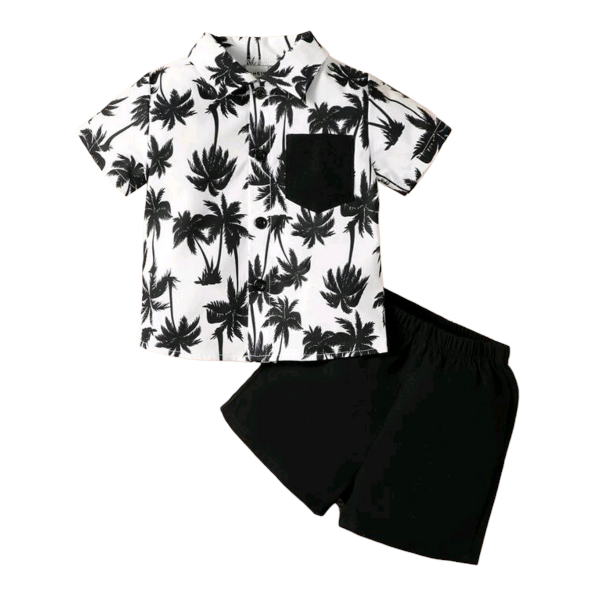 Baby Boy Summer Holiday Coconut Tree Printed Shirt And Solid Color Shorts Set -(size 6-9M)