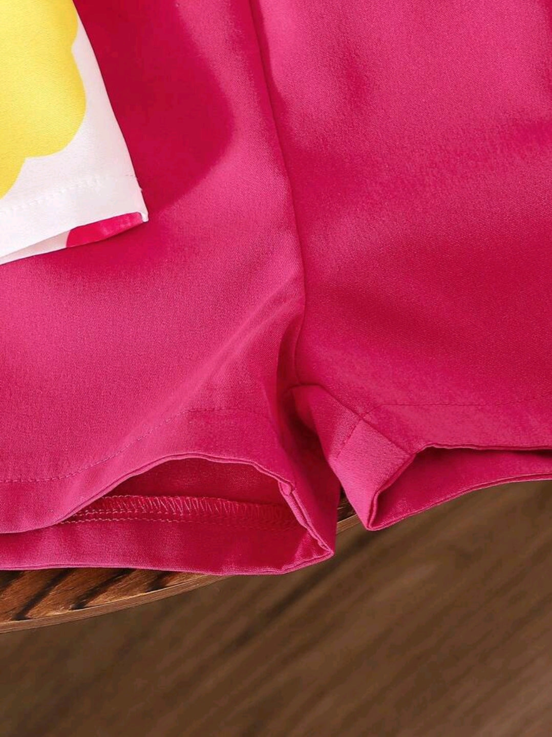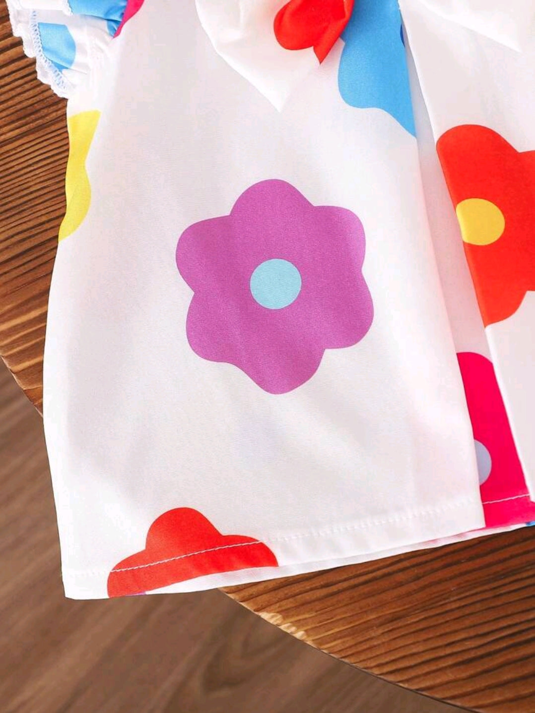 Baby Girls Casual Floral Print Bowknot Decor Top And Shorts Set, Summer -(size 3-6M)