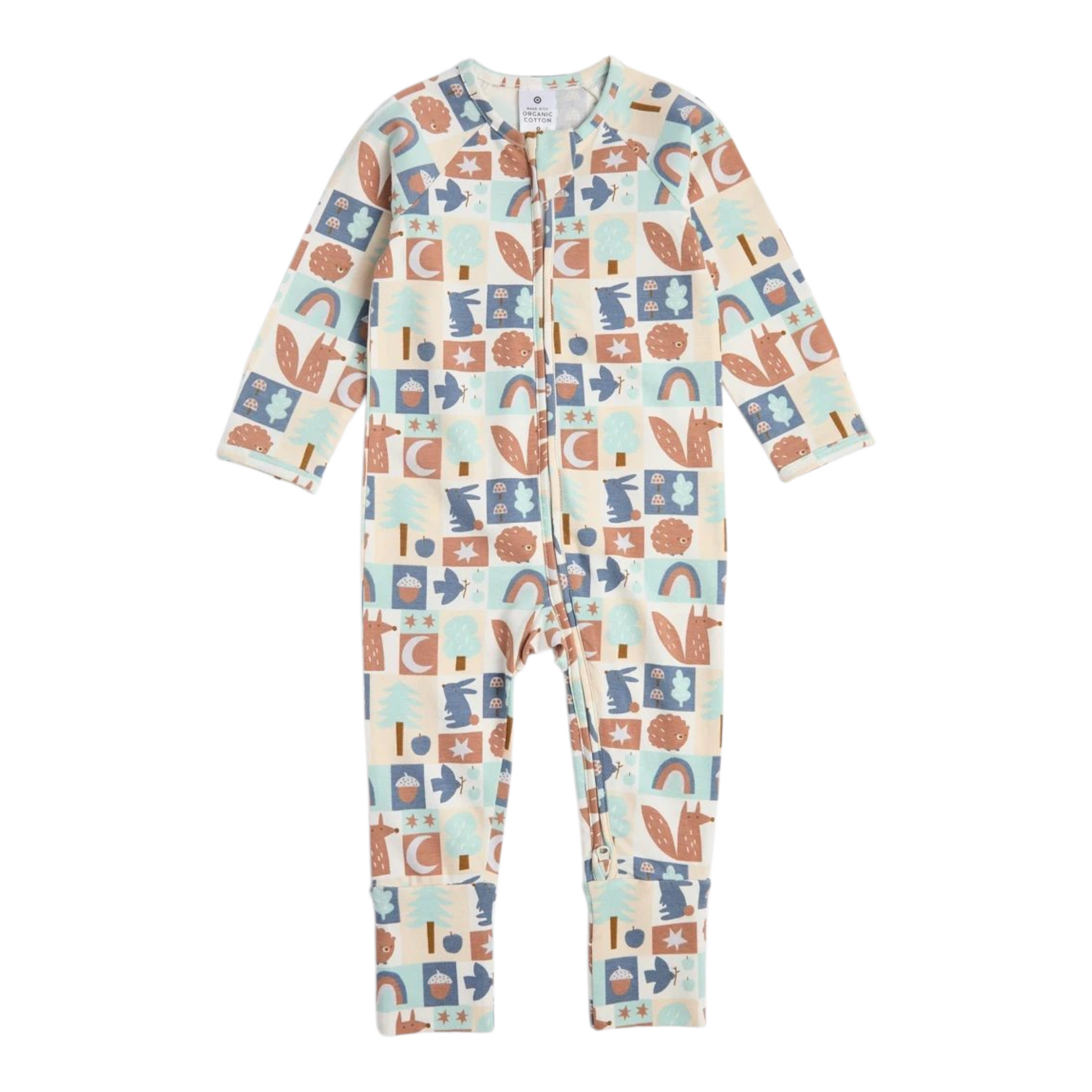 Baby Organic Cotton Footless Coverall - Animals -(0-3M)