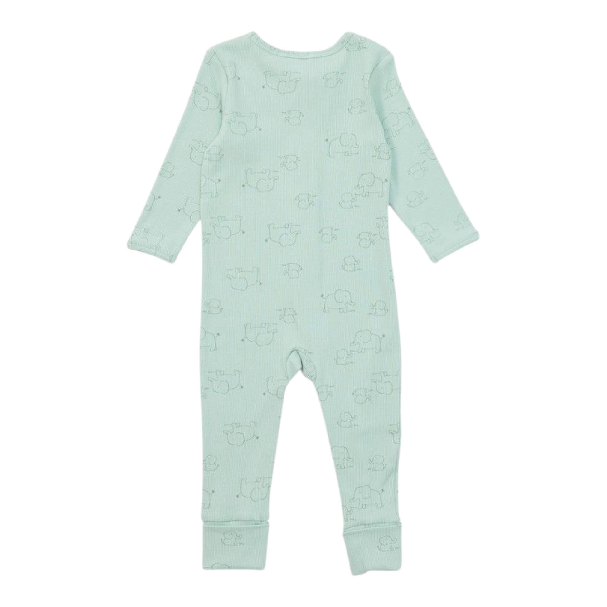 Dymples Baby Organic Elephant Print Rib Coverall - Green -(size NB)