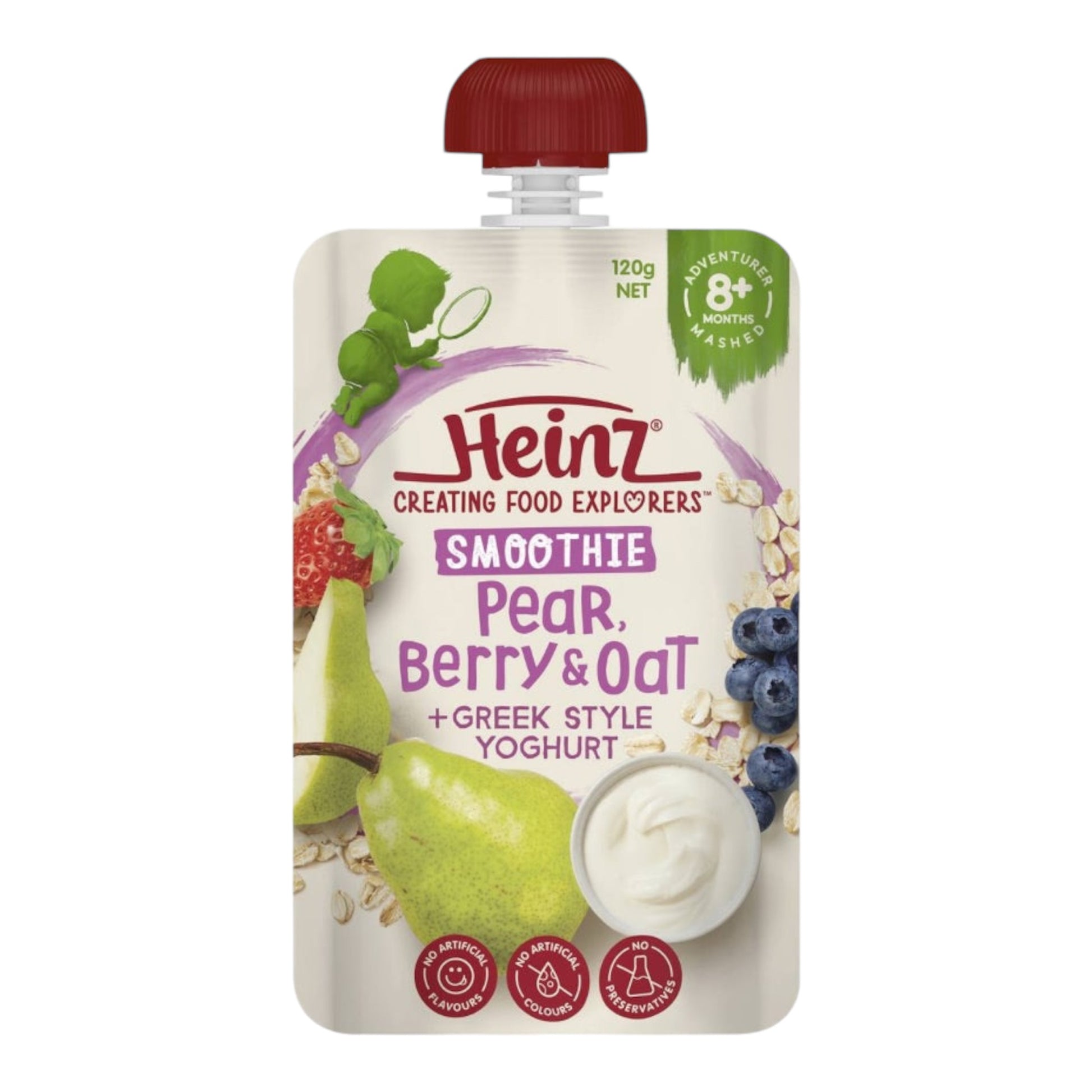 Designed to help little Food Explorers discover new tastes, Heinz Smoothie Pear, Berry & Oat + Greek Style Yogurt contains no artificial flavours or colours and no preservatives. It's super easy to serve - simply spoon into a bowl or if you're out and about, it can be squeezed straight onto a spoon.