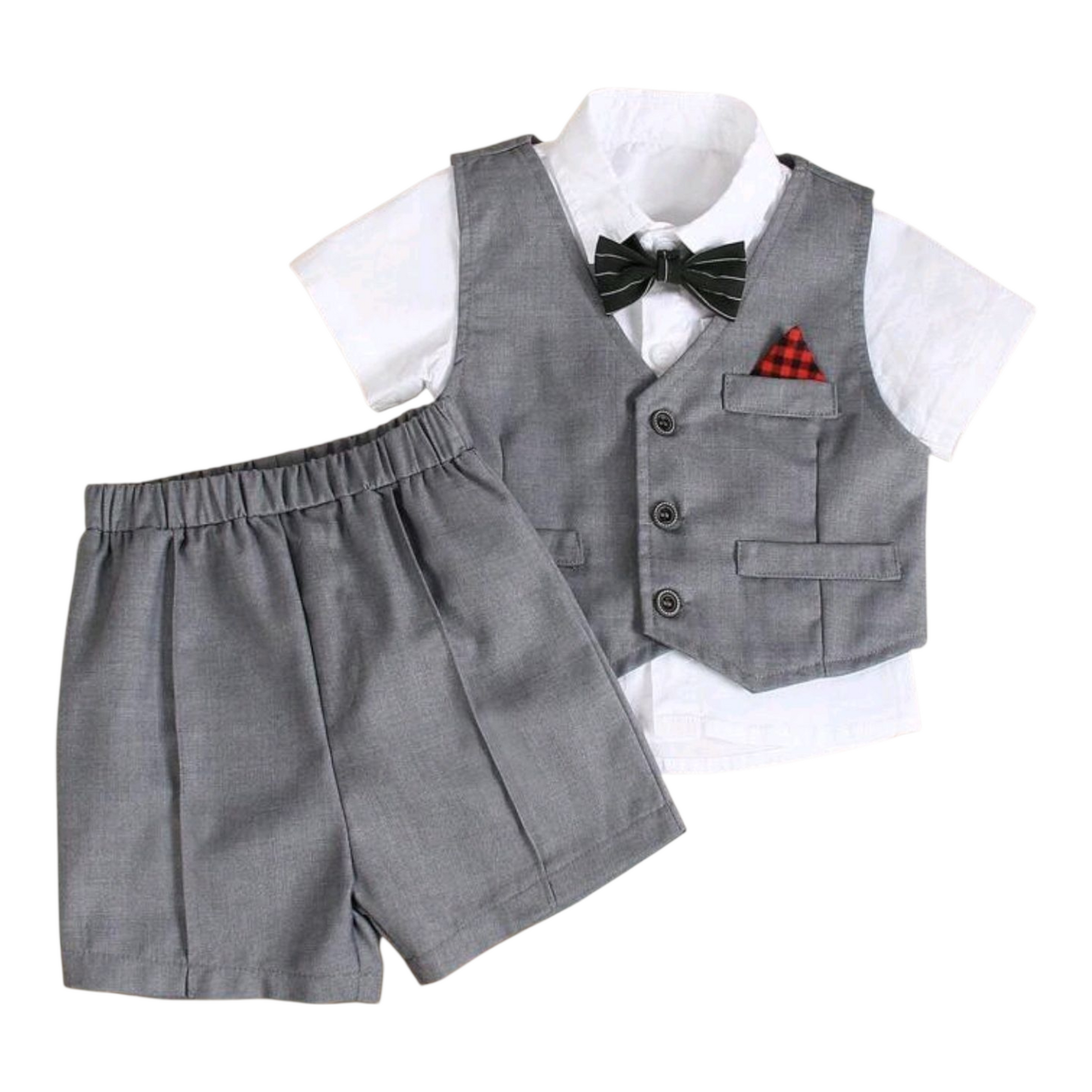 SHEIN 2pcs Baby Boy Vest Waistcoat & Loose Shorts Gentleman Outfit Set, Suitable For Special Occasions Like Weddings, Birthdays, And Daily Wear, Adorable And Stylish - (size 12-18M)