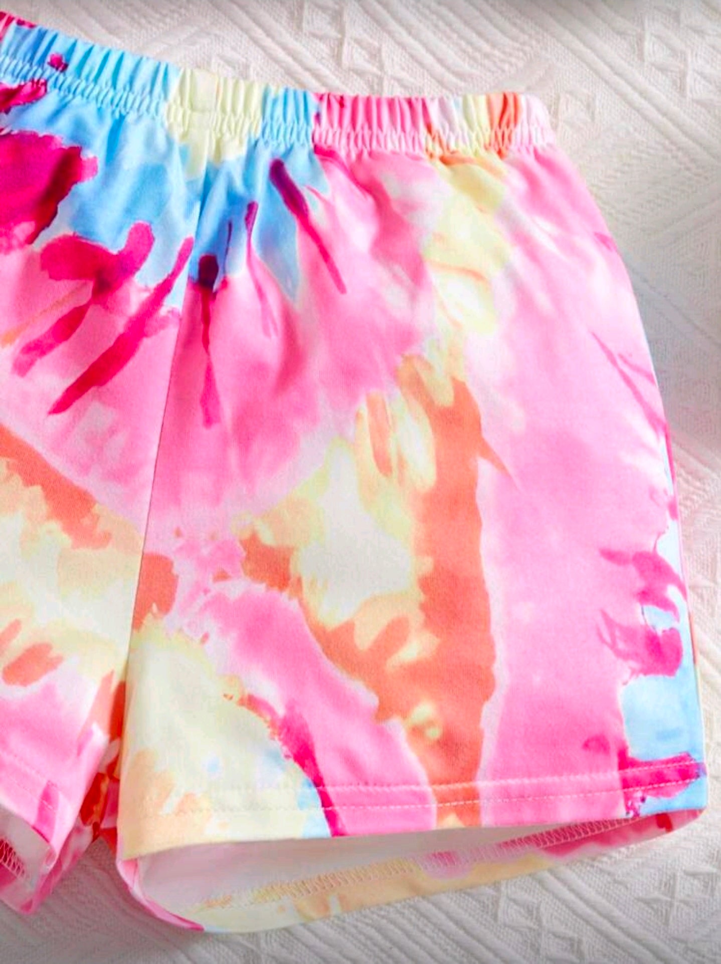 SHEIN 2pcs/Set Baby Girl Round Neck Short Sleeve Top And Elastic Waist Shorts, Suitable For Summer