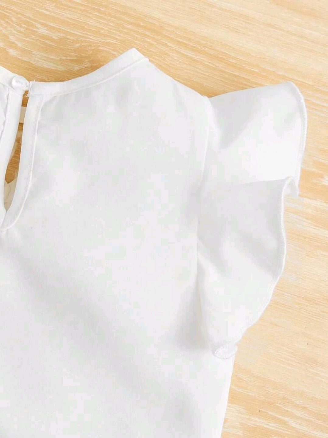 SHEIN Baby Girl Ruffle Trim Keyhole Neckline Top & Floral Print Belted Shorts -(size 2-3Y)