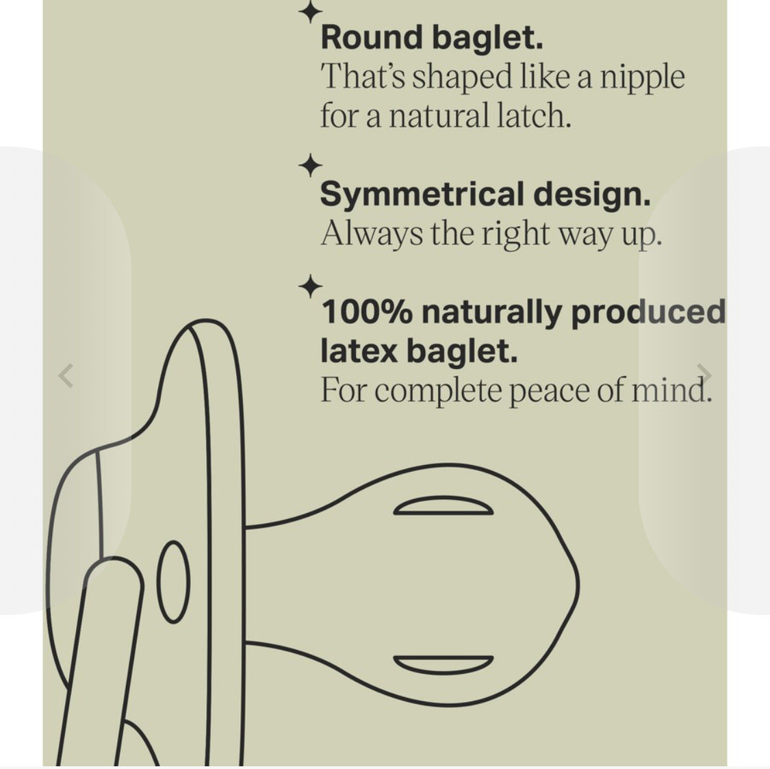 - Round baglet: The traditional, cherry shape of the baglet mimics a nipple to encourage a natural latch