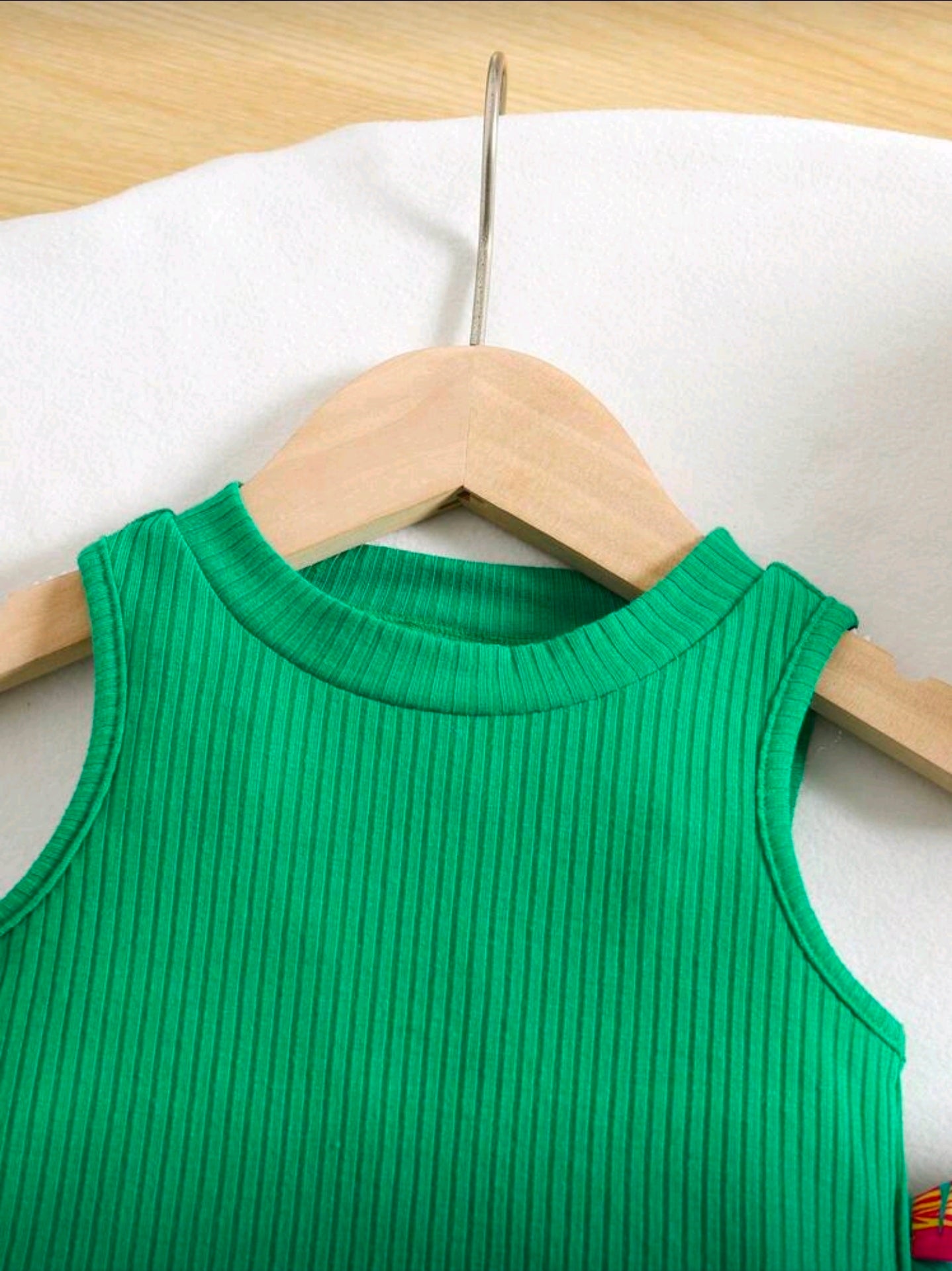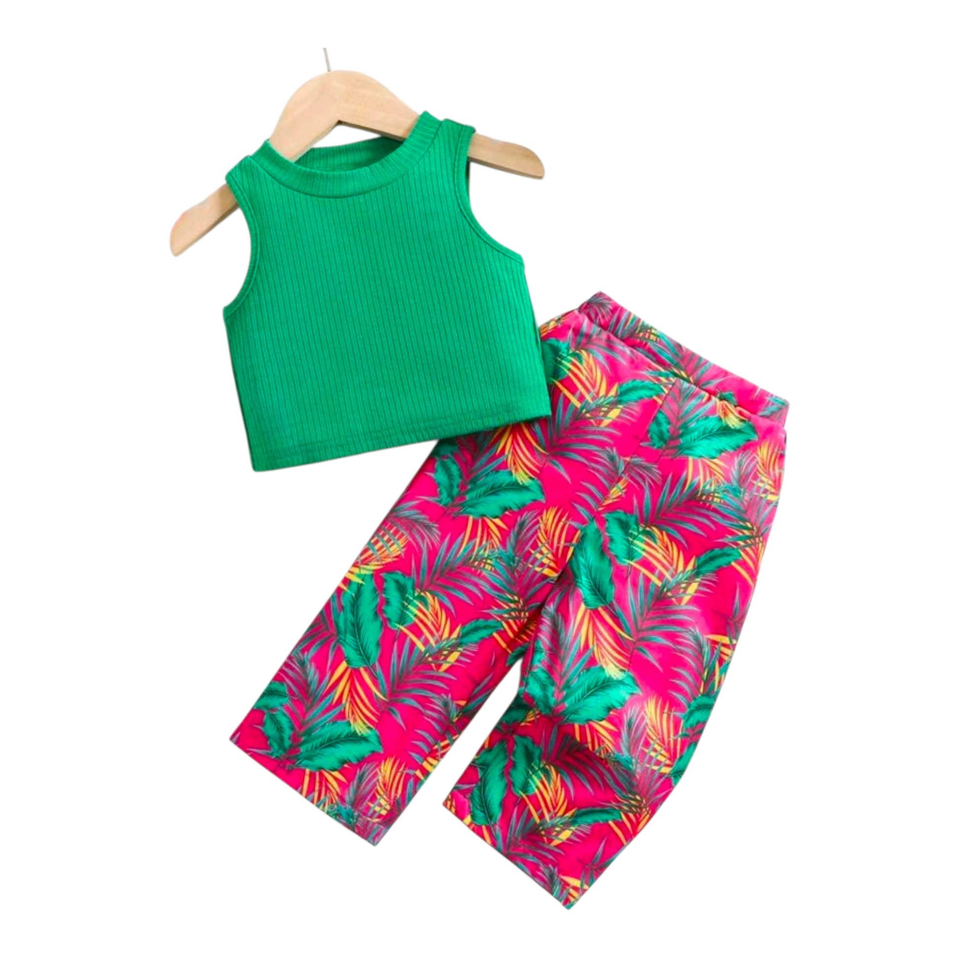 Travachic KIDS Baby Girls' Cute Floral Print Knit Camisole And Long Pants Set For Summer